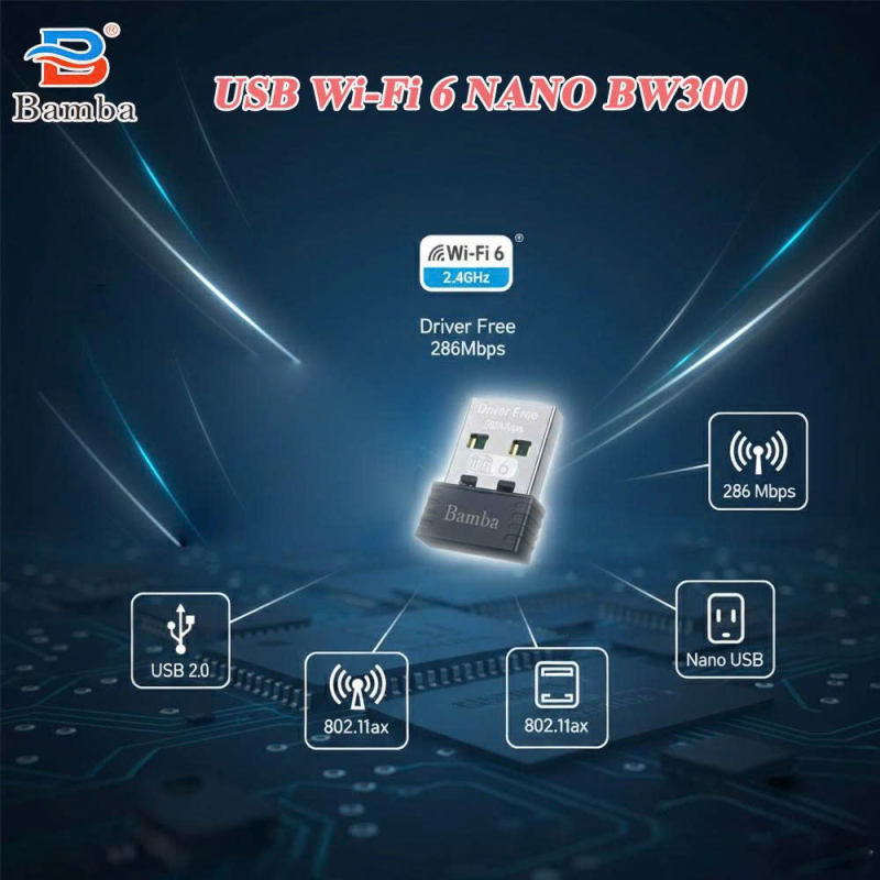 USB WIFI 6 BAMBA sở hữu kích thước nhỏ gọn, khối lượng nhẹ, kết nối với thiết bị qua cổng USB, cho bạn trải nghiệm internet tốc độ cao và độ trễ thấp.