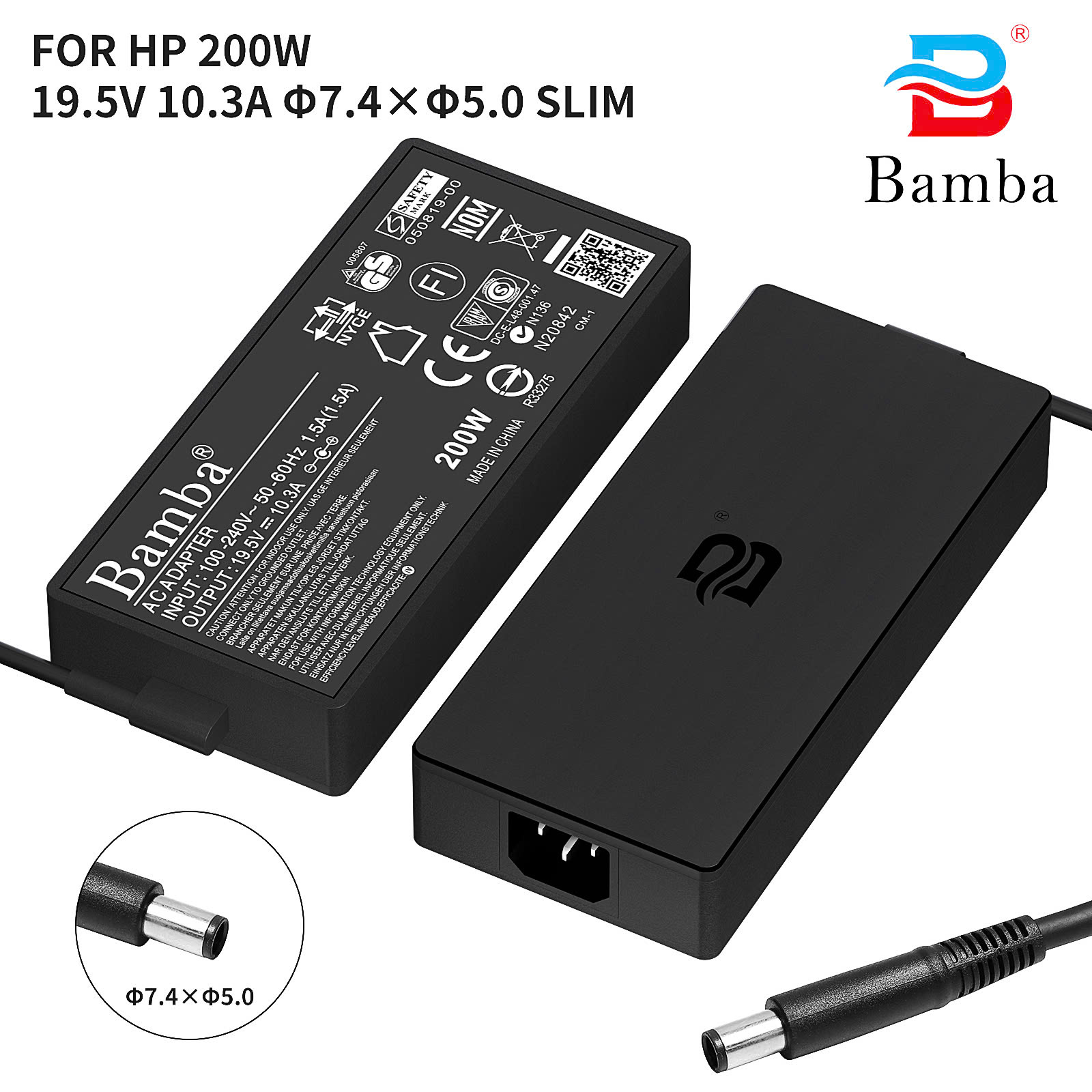 • Cục Sạc Bamba 19.5V-10.3A Đầu Kim To ( 7.4*5.0 ) Slim Cho laptop Hp DV4,DV6,CQ40,CQ45,CQ50,CQ60,CQ70,G4,G6,CQ32,CQ42,CQ43,CQ62,G62,CQ72,G72,HP Envy 17, DV4-5000,DV6-7000,DV6-8000, 440 G0,440 G1,445 G0,445 G1,450 G0,450 G1,455 G0,455 G1,470 G0,470 G1