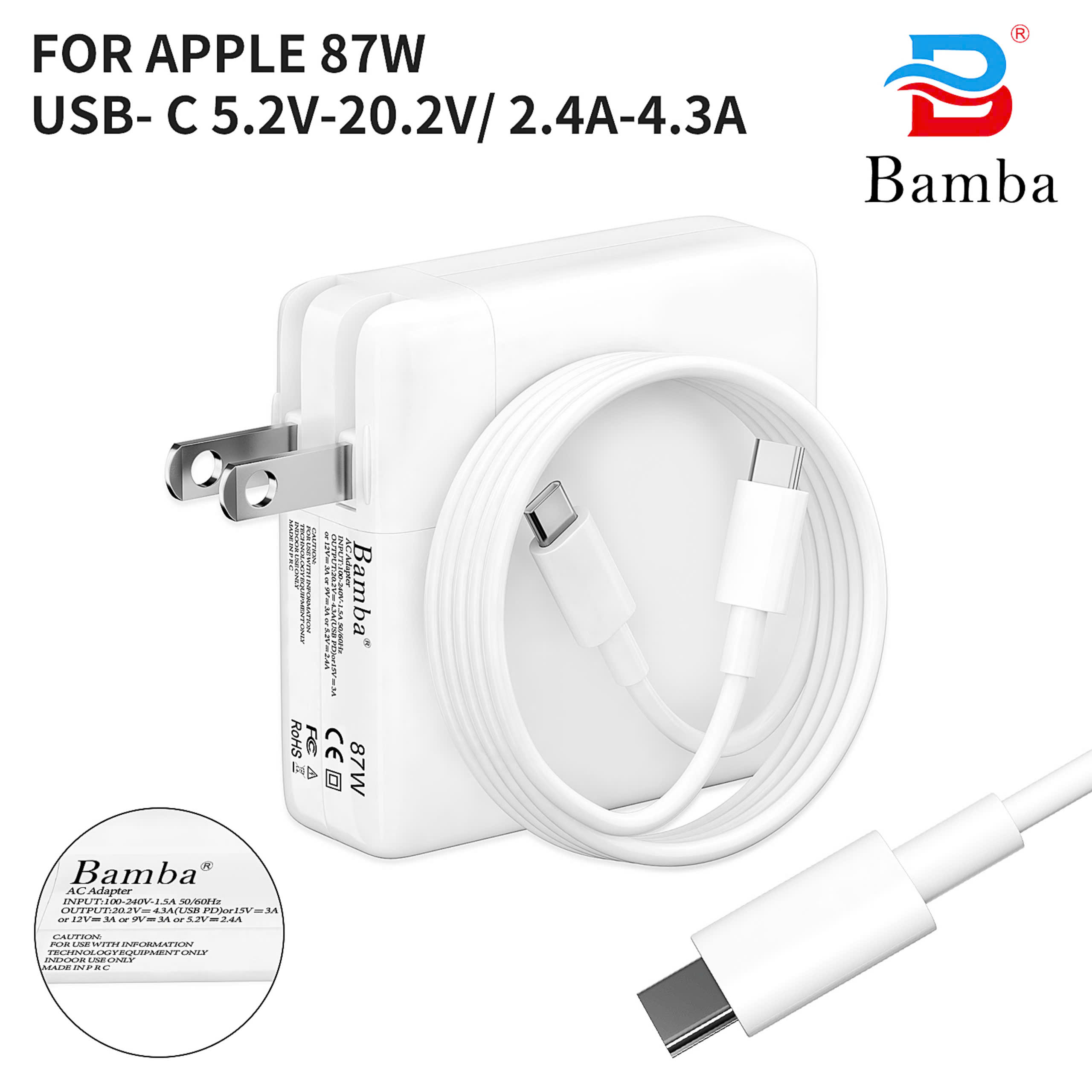 - Output : 20.2V – 4.3A (Usb C) 87W