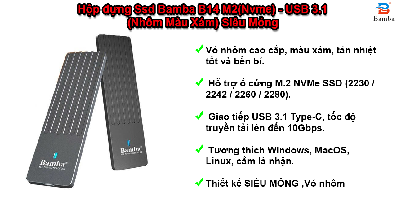 Hỗ trợ ổ cứng M.2 NVMe SSD (2230 / 2242 / 2260 / 2280).